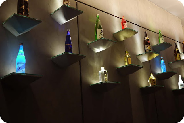 The restaurant décor was very chic and stylish with lots of dark cherry wood and flashes of bright colors. A wall showcasing Sake bottles were a sight to behold. The restaurant is also sectioned off for private dining experience. A long sushi bar graced the entrance while guests check out the freshest catch of the day!